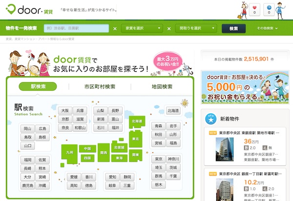 リブセンス(東京都品川区)6月24日、賃貸情報サイト「door賃貸」を全面リニューアル。検索物件の表示スピードを向上したほか、一発検索や検討物件の比較機能を充実させた。また、ユーザー満足度の向上をはかるため、「入居祝い金」を従来の1000円から5000円に変更した。