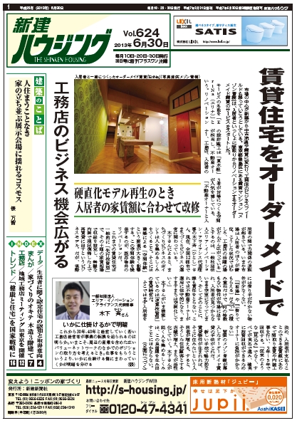 東京都豊島区にある賃貸マンション「メゾン青樹」は、入居者といっしょに間取りからリノベーションするオーダーメイド賃貸のサービスを開始しました。新建ハウジング6月30日号1面は、新築持ち家市場が中古流通や賃貸住宅にシフトするなかでの、工務店のビジネスチャンスをまとめています。そのほかの主な記事は次のとおり。