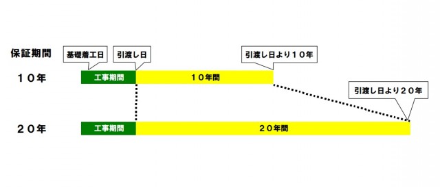 品質保証期間は、工事期間+引き渡し日から20年間。建築中の事故にも対応できるとする。