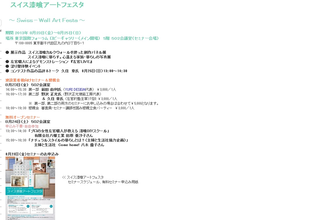 自然素材建材の輸入商社イケダコーポレーションは、塗り壁の魅力を伝えるイベント第4回「塗り壁のある風景コンテスト」内の企画として、左官職人の久住章氏と建築家の野沢正光氏の対談セミナーを8月23日(金)東京国際フォーラムで開催する。