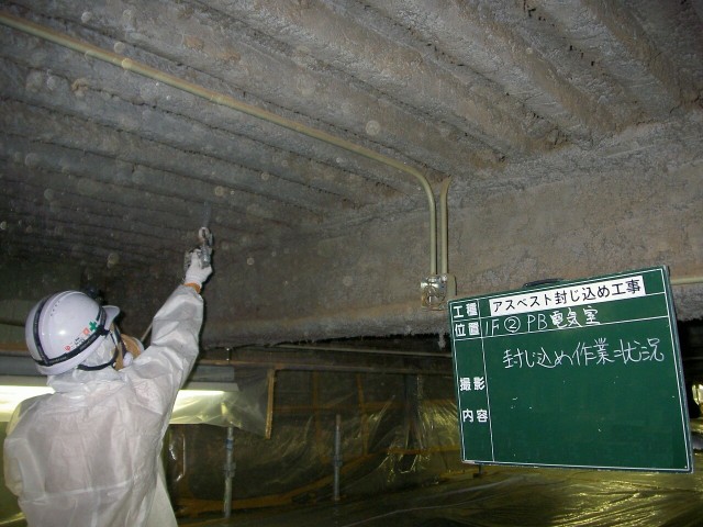 これに先駆けて、石綿飛散防止剤「アスブロック」を開発し、社内に専門部署「環境事業室」を設置。同社の責任施工のもと、環境測定から薬剤の開発、工事まで一貫して行う体制を整えた。