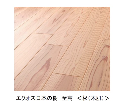大建工業(大阪府大阪市)は8月21日、スギやトチなどの国産樹種を表面化粧材に採用した内装建材「日本の樹シリーズ」から最高級グレードフローリング「エクオス日本の樹 至高」を発売した。