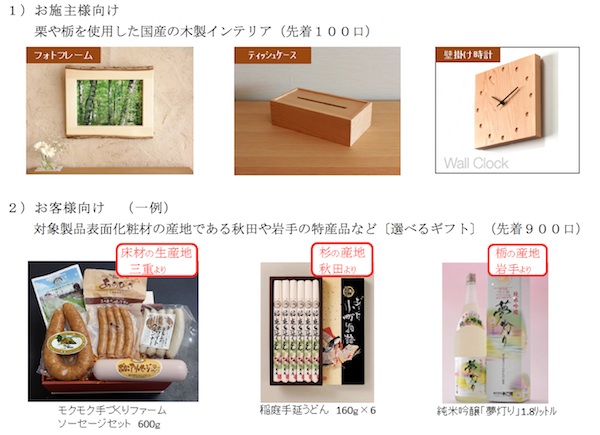 これにともない、同製品を採用した住まい手、流通業者・建築業者を対象に、国産材を使ったフォトフレームやティッシュケースなどのインテリアや、木材産地の名産品をプレゼントする発売記念キャンペーンを実施する。国産材の良さを認知してもらうとともに、林産業の活性化、地球温暖化防止に貢献するねらいがあるという。