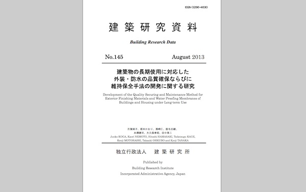 独立行政法人 建築研究所(茨城県つくば市)は8月28日、研究資料「建築物の長期使用に対応した外装・防水の品質確保ならびに維持保全手法の開発に関する研究」をまとめ、ウェブサイト上に公開した。