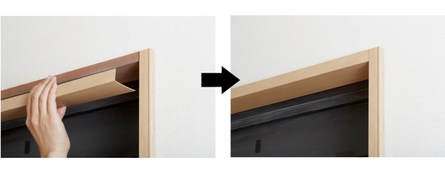 窓枠や建具枠などの既存枠の上から取り付けるだけで壁を取り壊すことなく建具や造作材をキレイに仕上げる「リノバカバー材」、最大15ミリの段差や隙間をカンタンに解消する可動式の「リノバ床見切り材」、既存枠はそのままに建具扉を交換できる「リノバ室内ドア」などを開発。