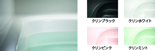 今回加わるキラクリン浴槽は、光沢感のある華やかな質感が特徴。表面層がなめらかなため、汚れを落としやすい。クリンホワイト、クリンブラック、クリンミント、クリンピンクの全4色。基本仕様との差額は税別9万円。