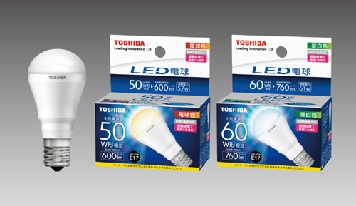 東芝ライテック(神奈川県横須賀市)は、電球60W形相当(昼白色)・電球50W形相当(電球色)の明るさを実現したミニクリプトン形LED電球2機種を、9月20日から発売する。