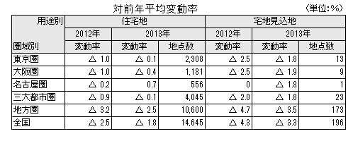 国土交通省は9月19日、今年7月1日時点の都道府県地価(基準地価)調査結果を公表した。昨年7月以降の1年間の地価は、三大都市圏平均では、住宅地はほぼ横ばい。全国平均では依然として下落しているものの下落率は縮小傾向が継続していた。上昇地点数の割合は全国的に増加しており、特に、三大都市圏では、住宅地の約3分の1の地点が上昇した。地方圏では、9割弱の地点が下落したが、ほぼ全ての道県で下落率は縮小した。宮城県は下落から上昇に転じた。