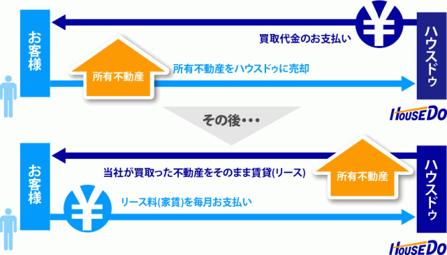 住まい手が所有する住宅をあらかじめ居住期間を設定したうえで同社が買い取り、売却後はリース契約を結んで賃料を払いながら期限まで従来通りに住み続けられるシステム。