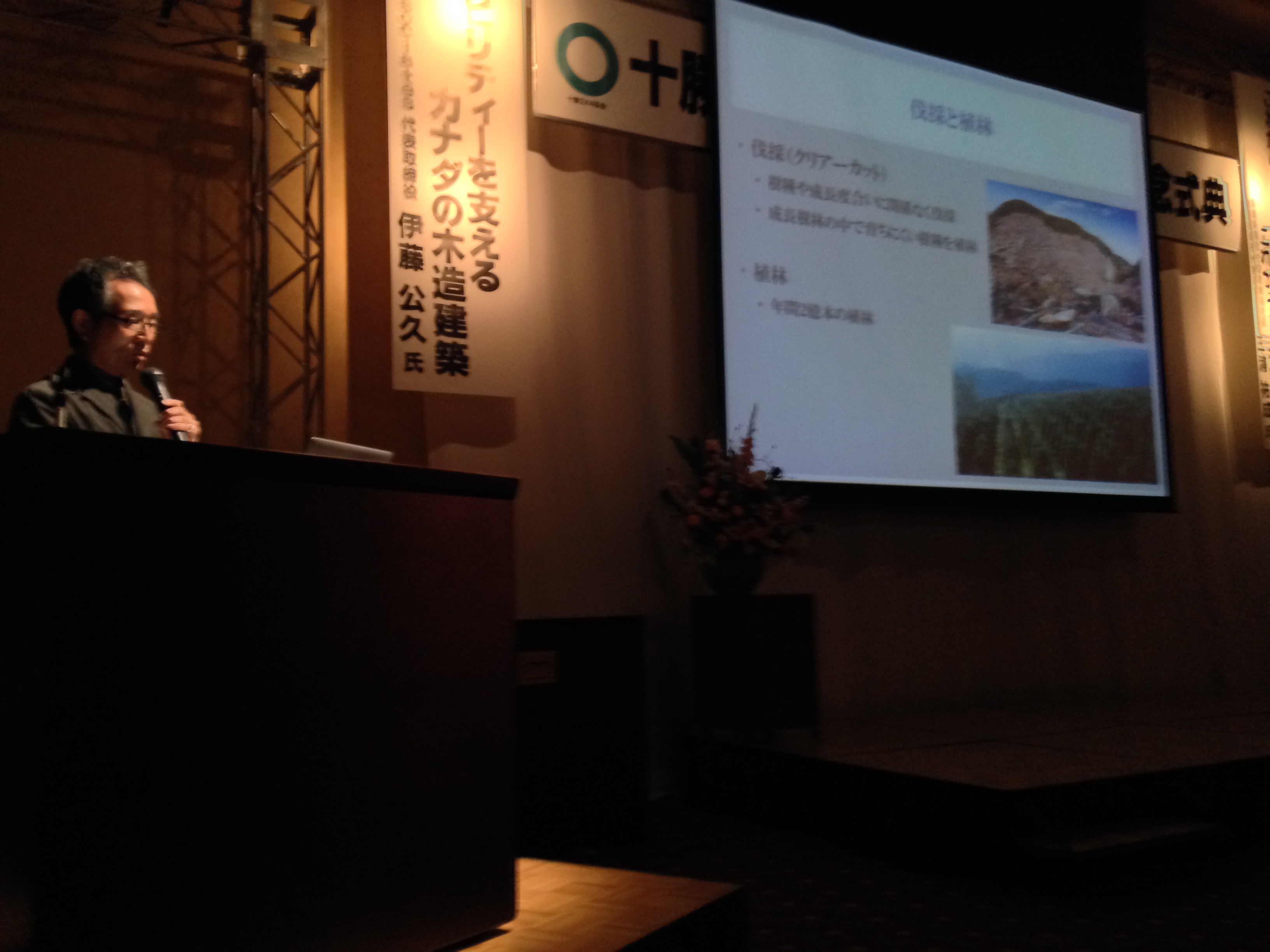 その後、新建ハウジング発行人・三浦祐成が「これからの住宅市場、これからのエコハウス」をテーマに講演。さらに、K.Ito&Associatesの伊藤公久氏が「サスティナビリティーを支えるカナダの木造建築」と題し、カナダの木造建築の最新事情をレクチャーした。