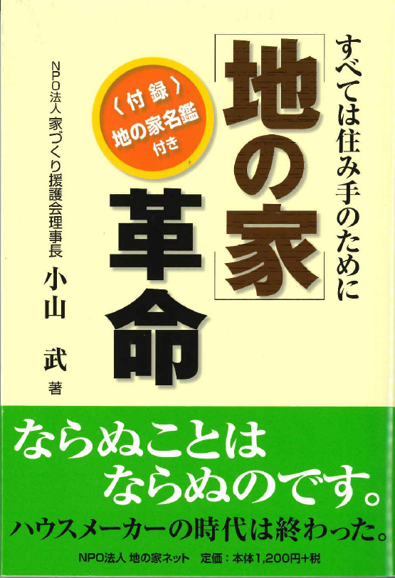 これまでNPO家づくり援護会の活動をつづけながらトラブル相談件数が増え続けるなかで、その原因が住宅を売るための「ビジネスの家」でにあると結論。 地域の家を地域でつくる「地の家」の普及をめざす。