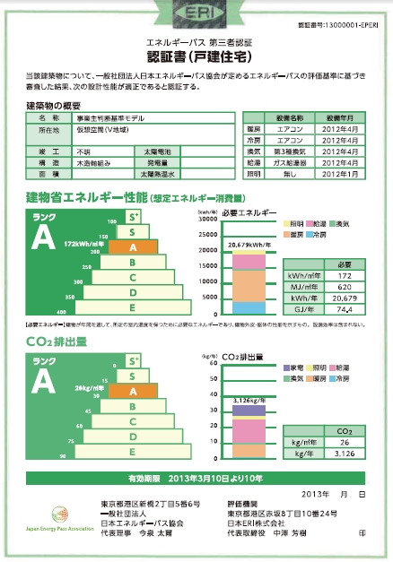 日本エネルギーパス協会(東京都港区)と日本ERI(東京都港区)は、住宅向けエネルギーパスの第三者認証サービスを来年1月から本格的に開始する。日本エネルギーパス協会が提供するエネルギーパス評価を日本ERIが第三者として認証を行う。