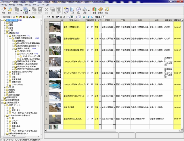 同社のデジタル写真管理システム「キャルスタジオ」を利用したもので、『「除染業務に係る技術指針」福島県生活環境部 平成24年1月版』に対応する。ツリー構造にしたがって、作業を進めることで適切に除染作業が行える。