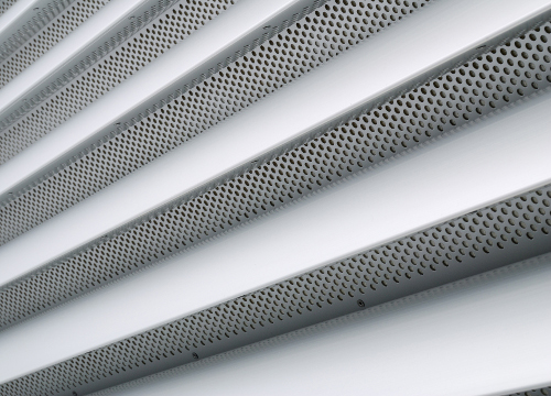 ルーバー形状で施工するため、パネル間を空気が通過。同時に、パネルが内包する吸音材が内部で発生する音を吸収するため、近隣住居に騒音を伝えにくくするはたらきがある。工場、商業施設、保育・学校施設などに。 3サイズ。材料設計価格は14万600円/平米〜。