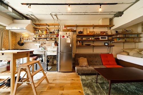 「FURNITUR半身浴」は、棚やテーブル、造作家具類の高さをすべて70センチに揃え、空間の広がりを演出。通常の平面図だけではなく、「視線の平面図」を描くことでつくりだされた空間に評価が集まった。