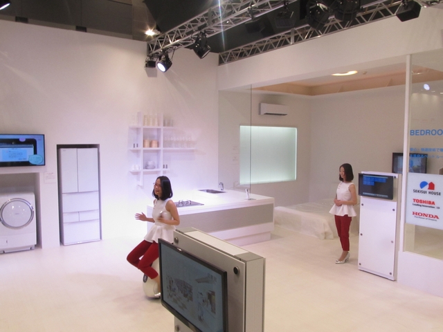 積水ハウス、東芝、ホンダが共同でスマートハウスの展示を行ったほか、トヨタ自動車もトヨタホームと共同で次世代HEMSなどを提案した。