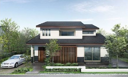 主要構造材である柱、梁には国産のヒノキ集成材を採用。床材は、国産針葉樹合板、国産材チップ利用ボード、国産天然ツキ板を使用したオール国産の複合床材を使用する。また、外壁材は、国産木材の製材後の背板や端材を木材チップに加工し、それを原料にして作られた窯業系サイディングを採用した。木材利用ポイントを最大で60万ポイントもらえる仕様。