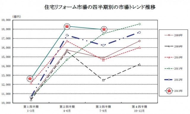 矢野経済研究所(東京都中野区)は12月3日、2013年第3四半期(7〜9月)における住宅リフォーム市場調査の結果を発表した。
