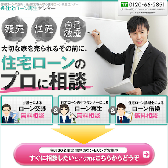 「家を売らずに住宅ローンを完済する」ことを前提に、借り換えによるローン返済額の減額交渉や個人民事再生などの法的業務、住宅ローン再生プランナーによる資金調達や親族間売買の代行などを通じて住宅ローンの完済を支援する。