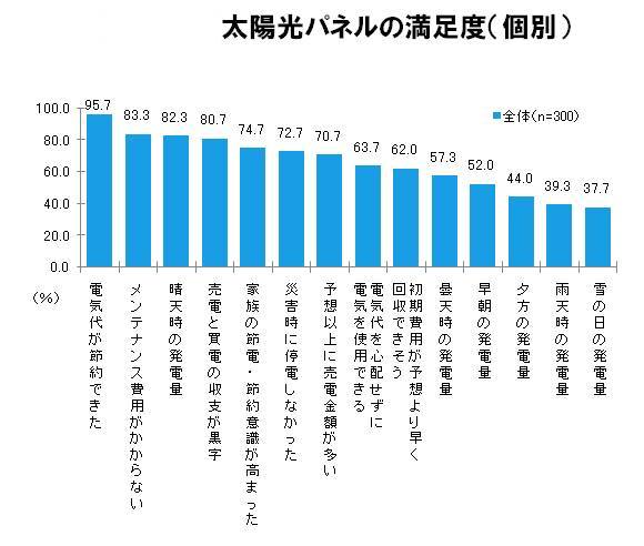 なかでも曇天時の発電量に不満がある人は、どの項目でも満足度が低い結果になっているとした。