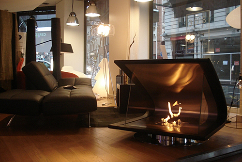 メルクマール(東京都中央区)はこのほど、バイオエタノール燃料の暖炉「ecosmart fire(エコスマート・ファイヤ)」のショールームを港区南青山にオープンした。