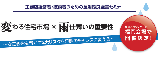 消費税増税、人口減少社会で変わる住宅市場と、雨漏りトラブルに学ぶ雨仕舞いの重要性。安定経営を脅かす2大リスクの現状と対応策、これからの進むべき道を専門家が整理しわかりやすく解説します。