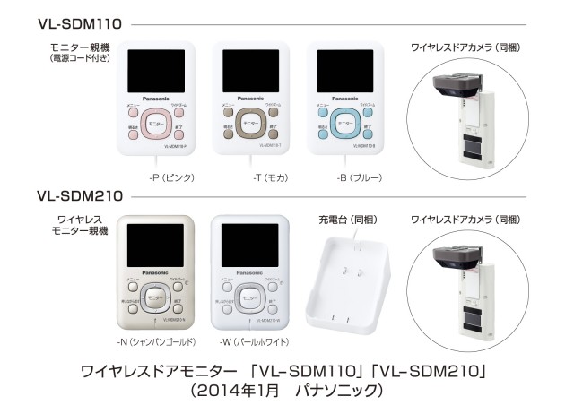 パナソニック(大阪府門真市)は2月14日、来訪があったときや外の様子が気になるときにモニター親機のボタンを押すだけで玄関ドア前のようすを確認できるワイヤレスドアモニター(VL-SDM110、210)を発売する。
