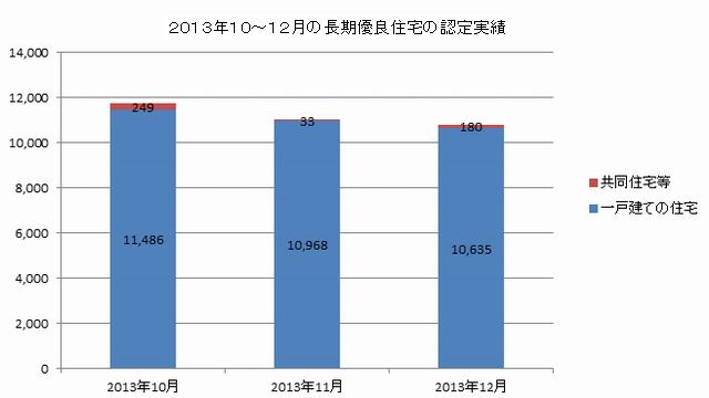 国土交通省は1月31日、昨年10月~12月の長期優良住宅の認定状況を発表した。一戸建て住宅の認定戸数は3カ月連続で1万戸を超えていた。
