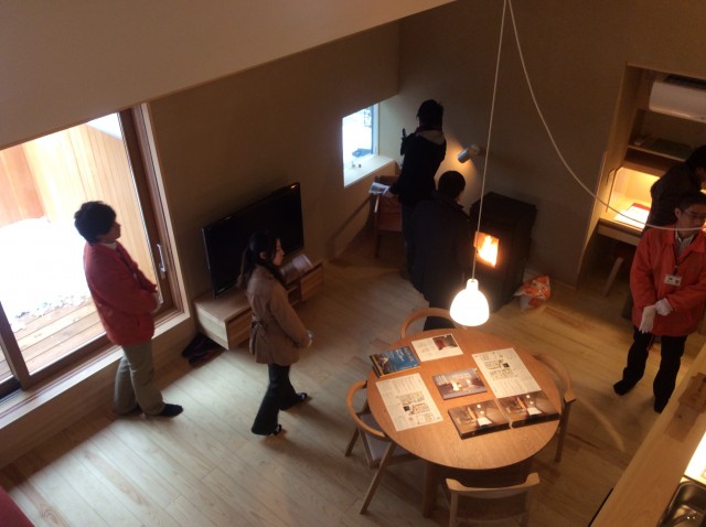 当日は、伊礼氏設計による同社最新のモデルハウス「大蔵町の家」を視察したあと、代表の阿部一雄社長によりプロジェクト発足の経緯や進捗状況、同社がめざす都市型工務店の戦略について、社内資料なども公開しながら解説した。