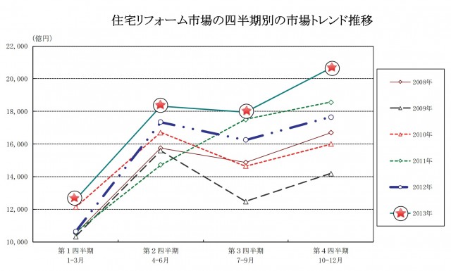 矢野経済研究所(東京都中野区)は2月25日、2013年第4四半期(10〜12月)における住宅リフォーム市場調査の結果を発表した。