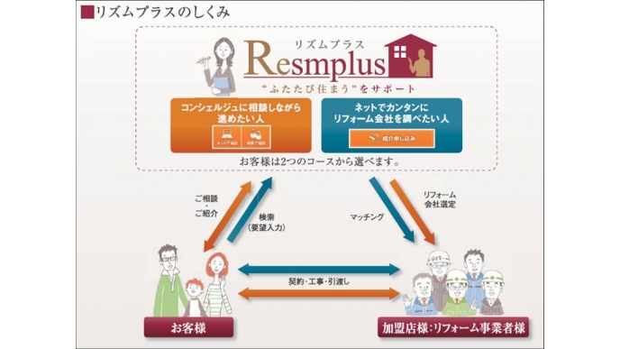 「リズムプラス」は、リフォームに関連する知識を持った建築士、インテリアコーディネーターなどの専門家がコンシェルジュとなって、リフォームに関する不安や悩みを解消し、希望に沿ったリフォーム会社を紹介するサービス。