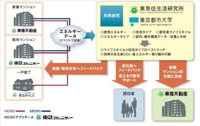 マンションは、国土交通省の「平成25年度住宅・建築物省CO2先導事業」に採択された「東急グループで取り組む省CO2推進プロジェクト」の導入第1号物件。先進的な省エネ設備を導入して居住者に省エネ行動をうながし、その効果を同グループ内の産学共同研究で検証していく。