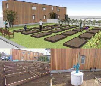 また、1区画2m2、全16区画の菜園の契約者の募集もスタート。農具や専用コンテナを貸し出すため、手ぶらで気軽に野菜づくりを楽しむことができる。入居者と菜園契約者が利用できるコミュニティハウスには、キッチン、調理器具、冷蔵庫、食器、更衣室、トイレ、テラスを完備。農作業のあとにくつろいだり、収穫した野菜でミニパーティなどを開くことができる。