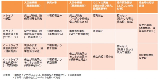 借主負担型の賃貸借契約は、貸主の管理負担を軽減することで、個人所有のストック住宅を賃貸住宅として活用していくことを促進していくのが狙い。借主側でも自分の好みを取り入れたいというニーズがあるが、これまでは業界でルールがなく、普及が進んでいない。