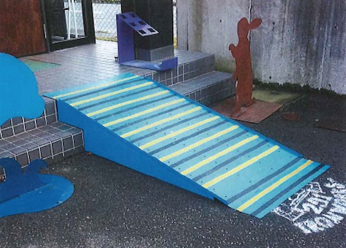 3月29日〜4月30日までフェイスブック、郵便、FAX、メールを通じて希望の設置場所を募集し、そのうち3カ所に特注で取り付ける。スロープは、サイズを測定したうえで、鉄をアップサイクル(※)して製作するという。