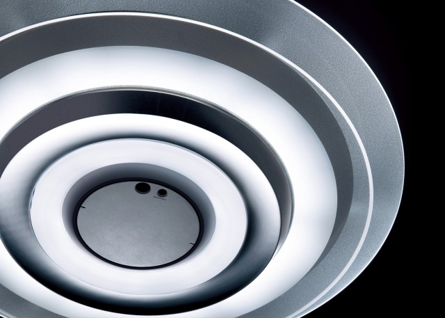 光を上下に拡散し、視線の先を明るく照らすことにより空間の広がりを演出。部屋の使い方にあわせてあかりのパターンを変えられ、来客時やホームパーティでは「はなやかのあかり」、勉強や読書をするときには「勉強のあかり」などを選ぶことができる。