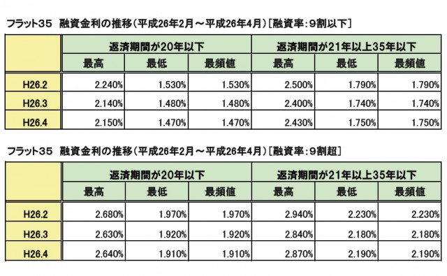 住宅金融支援機構(東京都文京区)は4月2日、各金融機関が提供する「フラット35」の2014年4月の適用金利を公表した。