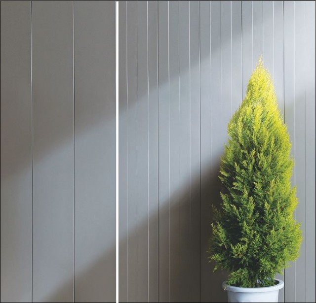 表面デザインは、「リブあり」「リブなし」「ドロ目」「杉目」の4タイプ。出入隅、役物も用意しており、きれいな納まりを実現する。有効幅は228ミリ。