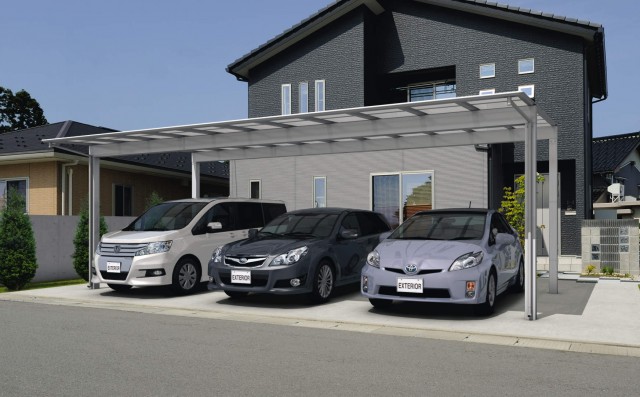 3台駐車が可能な「トリプルタイプ」として、ワイド間口の7280・7998ミリタイプを新たに設定。また、1台駐車用にも間口3306ミリを追加し、雨の日もゆとりのある乗降を可能にした。 屋根枠にはナチュラルなテイストの木調色が加わった。