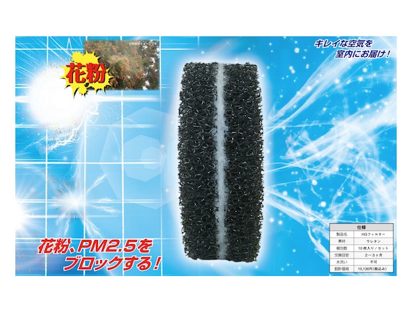 日本住環境(東京都台東区)はこのほど、自然給気口用の高捕集ウレタンフィルター「HGフィルター」を発売した。 静電気の帯電加工をほどこしたフィルターを中央部に配することで、花粉やPM2.5の室内への侵入を防止。2.5マイクロメートルの粒子であれば97%カットすることができるという。 設計価格は税込1万5120円(10枚入り)。