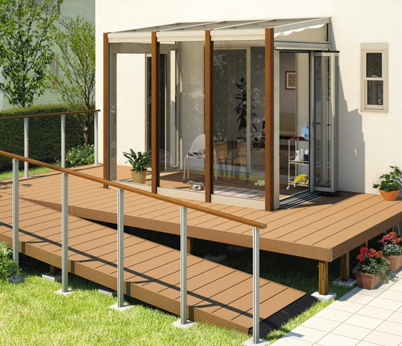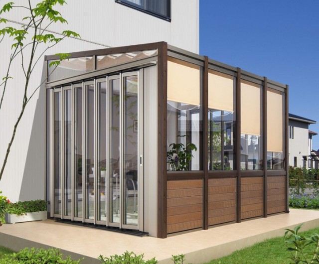 三協立山(富山県高岡市)・三協アルミ社は、ガーデンテラス「スマーレ」の商品ラインアップを拡充する。側面から住宅の壁を伝う風を効果的に採り入れることができる新機能窓を採用した「サイドクローズタイプ」と、同社の人工木デッキ「ひとと木2」と組み合わせて、リビングと一体感のある空間を演出できる「デッキON仕様」を追加する。