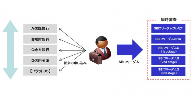 SBIフリーダムは、複数の商品タイプ、金利タイプ(変動金利[半年型]・当初固定金利型・全期間固定金利型・ミックス型)をそろえ、商品タイプごとに金利や融資条件が異なる。これら複数の商品タイプを1度に申し込めるのが特徴。