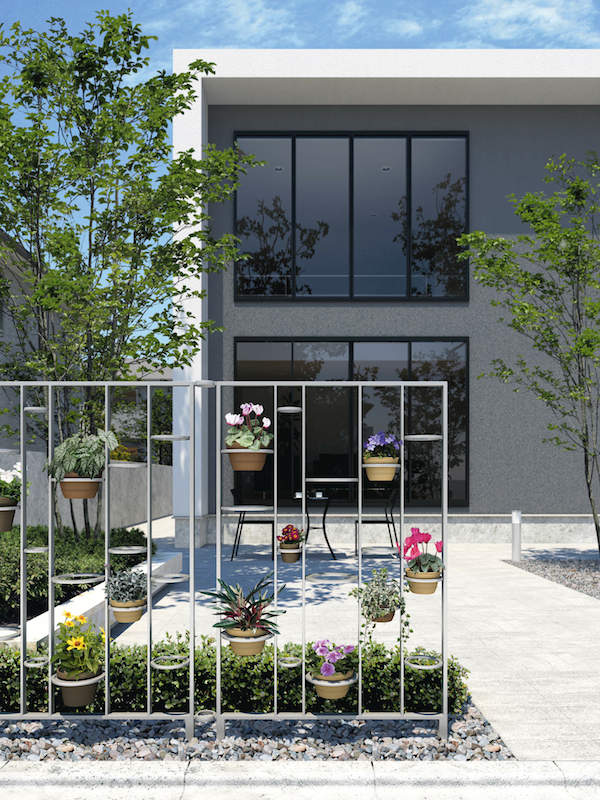 千葉学氏による「RING RING(リング・リング)」は、間隔の異なる格子と3サイズのリングを組み合わせたもの。リングに植木鉢を飾ったり、鳥やネコのためにエサを乗せた皿を置いたりと「住人が関わる」フェンスをめざした。10万5000円〜。