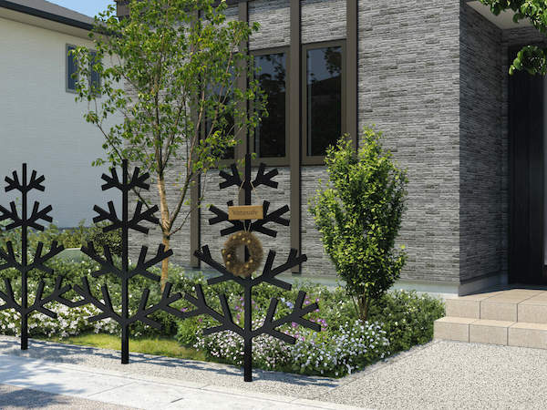 納谷学氏+納谷新氏による「kaede・momi(カエデ・モミ)」は樹木モチーフの有機的なデザイン。連結して並木のような表情をつくったり、表札や電飾を設置することが可能。6万8000円〜。
