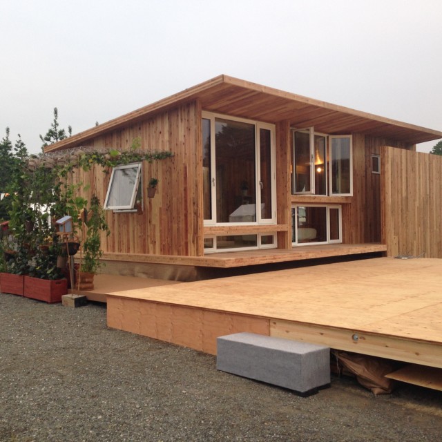 「Fun to Shareハウス」は、今年5月16〜18日に開催された「第9回ロハスデザイン大賞2014新宿御苑展」(主催:ロハスクラブ)で公開されたもの。これをエコライフ・フェア2014に移設し、多くの人にCLTによる建物の可能性や優位性を知ってもらうねらいがある。
