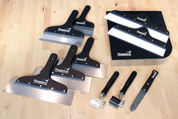 地ベラ8・9・10寸(1300円~)、フラットパテベラ5・7寸(1800円~)、スムーサー9・11寸(2000円~)、 角ベラ230mm(1400円)、ジュラコンローラー(2600円)、ウレタンローラー(2800円)、パテ盛板(3000円)、5点セット(6200円)。