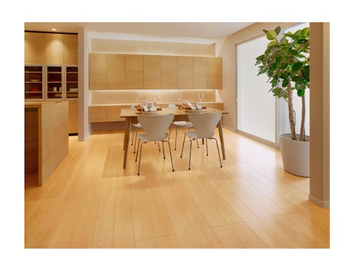 基材に「植林木複合合板」を採用。その上にキャスター付きの机・椅子などによるへこみに強い硬質バッカーを、さらにキズや汚れに強いハイパーフィルムを重ねることで、簡単な手入れで美観を保てるようにした。 5色。303x1818x12ミリ。床暖房非対応。2万5000円/坪。