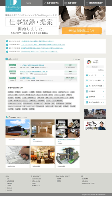 建築関連の仕事を依頼したい人と受注したい人をマッチングし、受発注、決済までをウェブで完結できるクラウドソーシングサイトの「Cloud Design」(運営:クラウドデザイン、東京都渋谷区)はこのほど、仕事登録と提案の受け付けをスタートした。4月から会員登録を先行して始めており、今回、本格稼動に踏み切った。