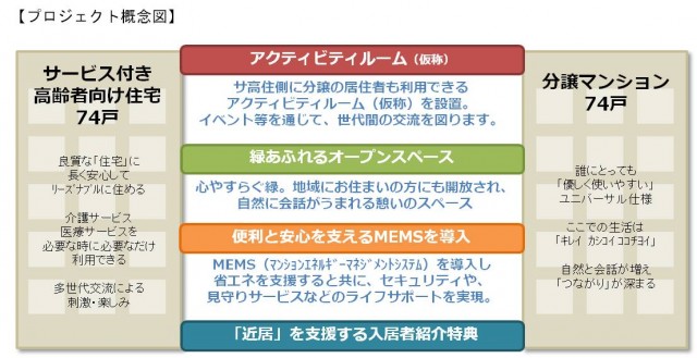 さらに、分譲マンション居住者が高齢になった際の健康相談や日常生活相談をサ高住で受けられるサービス、親世帯をサ高住に呼び寄せる際の入居者紹介特典などを予定している。