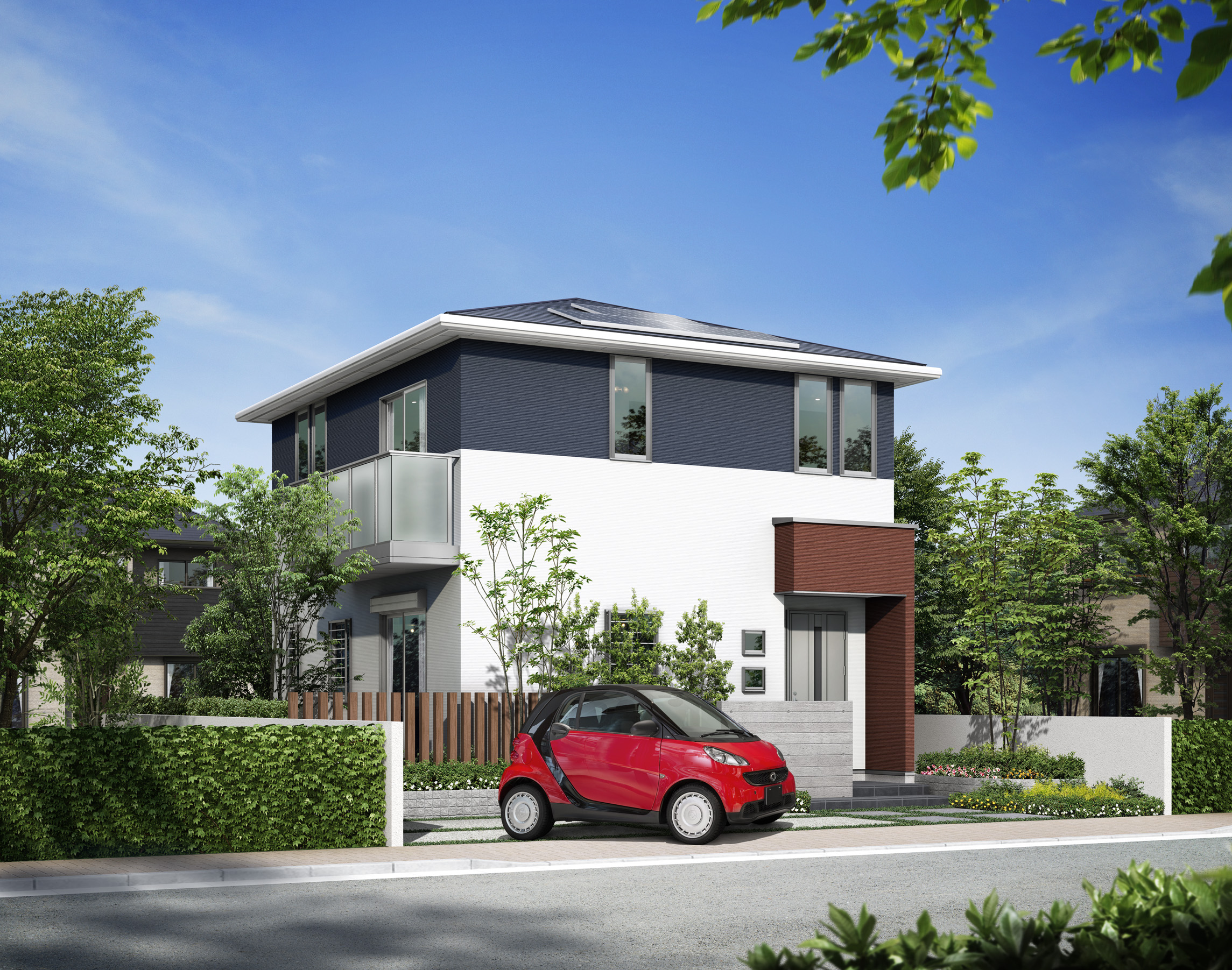 太陽光発電システム5.11kW搭載の45坪タイプで税別38万円/坪~。